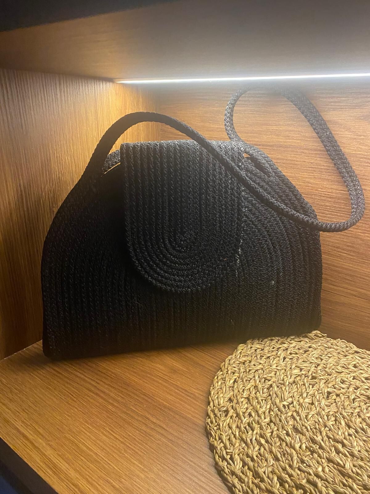 Yetişkin ve genç kızlar için uygun, her yaş grubuna hitap eden tasarımıyla dikkat çeken kordon ip el yapımı çanta. Gündüzden geceye her ortama uyum sağlayabilen, şıklığı ve fonksiyonelliği bir arada sunan siyah renkli çanta. .Askısı mevcuttur